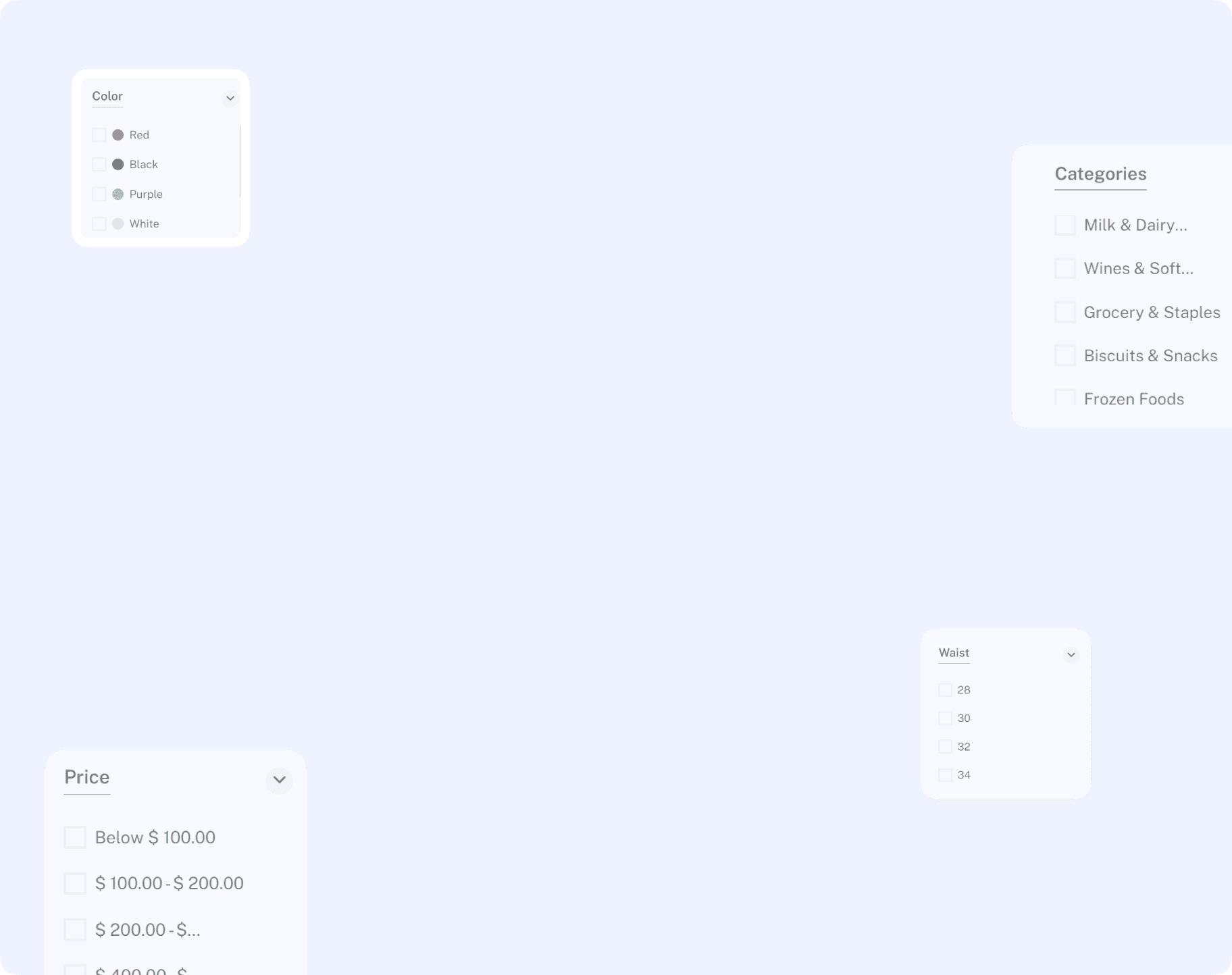 Fastkart has an advanced filter with every option possible and an accordion option.