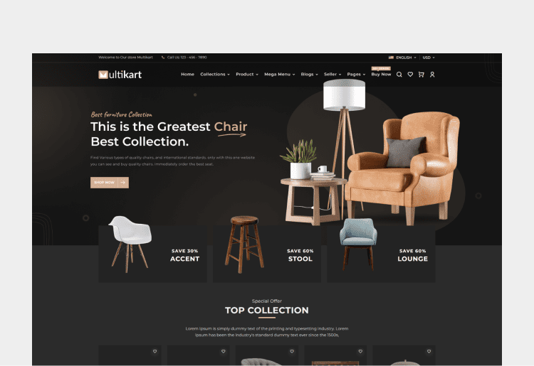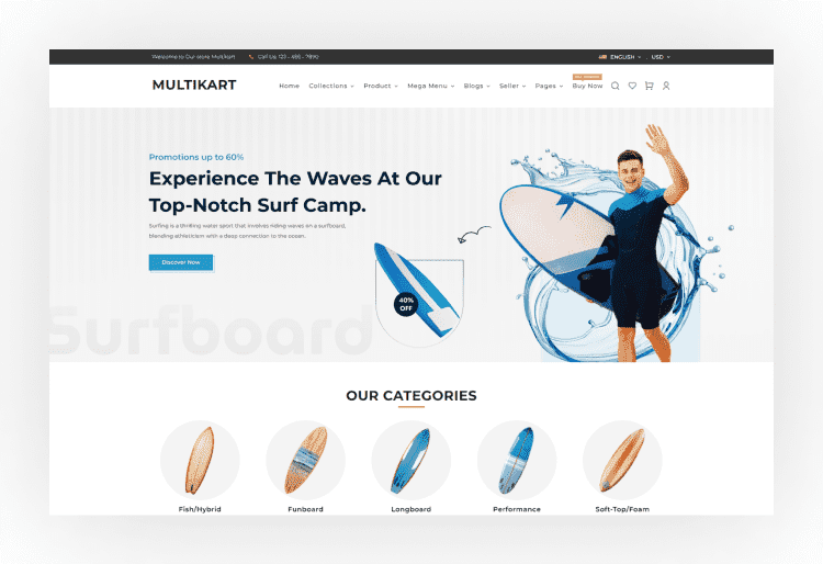 Multikart offers more than 30 features and 6 different product layouts.